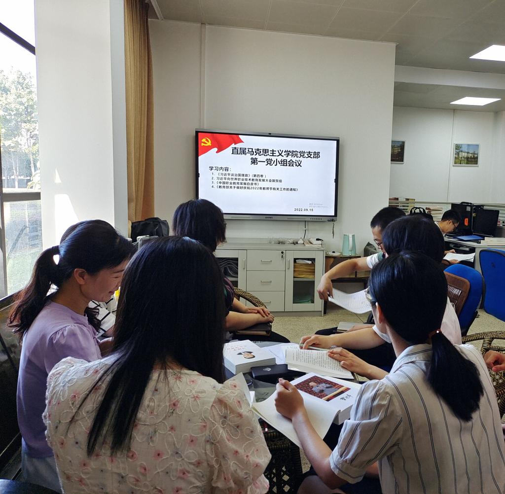 2022年9月15日,直屬馬克思主義學院黨支部第一黨小組在會議室101開展理論學習活動。本次活動由羅蕓同志主持,第一黨小組全體成員參加,校黨委書記曾武祈對學習活動開展指導。