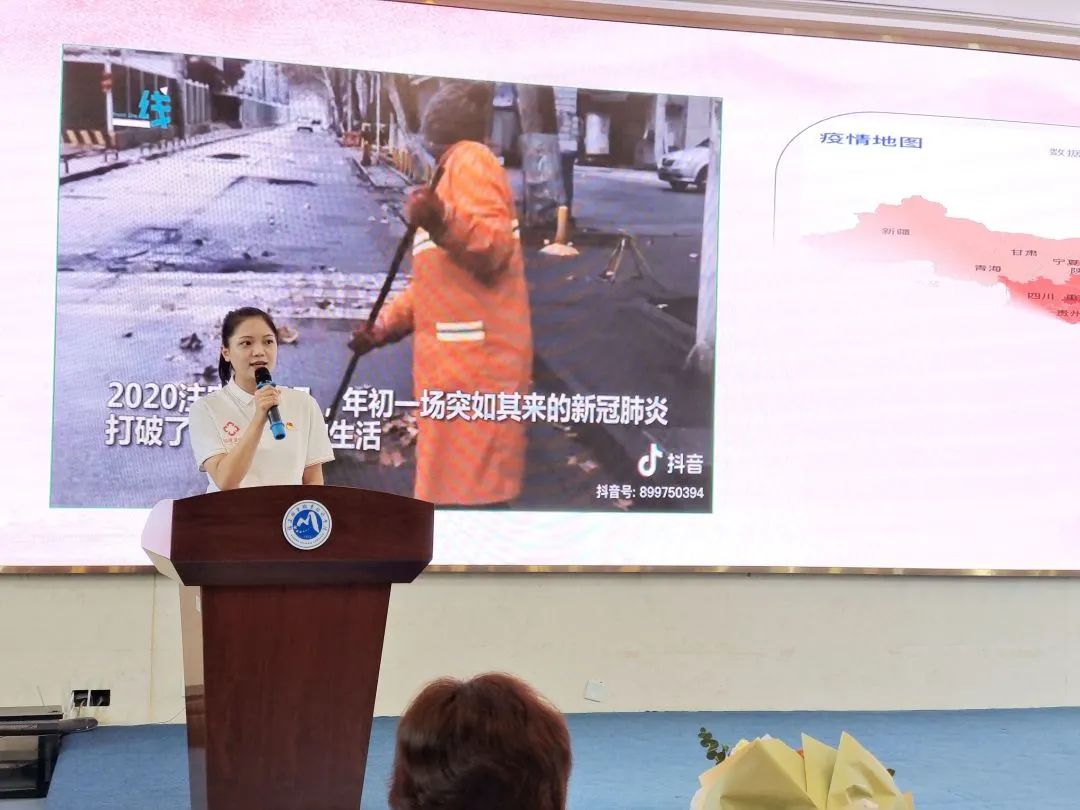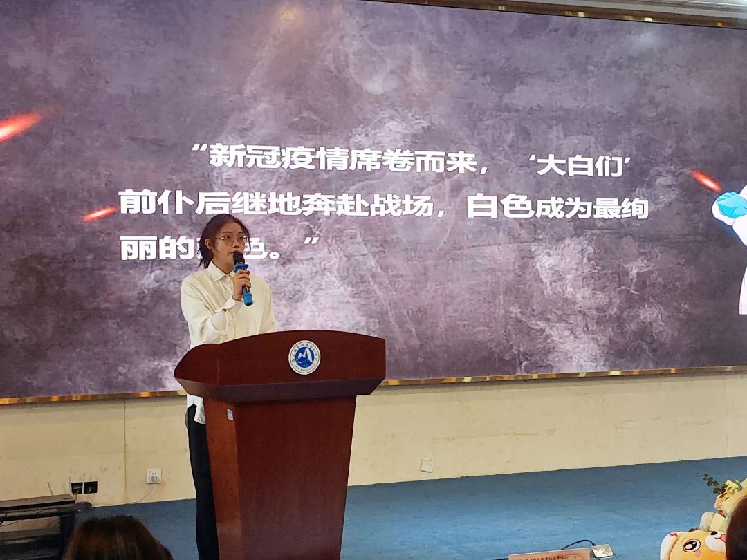 在校生代表許欣穎、張惠英分別以“ 微光成炬,我成了你們”“我的流調(diào)日記”為題,分享她們在后方戰(zhàn)“疫”一線保駕護航的故事。流調(diào)工作如同一場沒有硝煙的戰(zhàn)爭,所有參加抗“疫”的志愿者們,精銳出戰(zhàn)、沖鋒在前,不辭辛勞、不懼風險,迎朝露、伴月光,全情投入,承擔起看似瑣碎而又不可缺的大量工作,用自己的行動為這場戰(zhàn)“疫”默默奉獻,用一道道微光匯聚成希望的火炬,照亮了人民對美好生活的向往。身為醫(yī)學生,她們通過此次“實戰(zhàn)”,錘煉了自己的本領,并深刻認識自己醫(yī)學生的使命責任。
