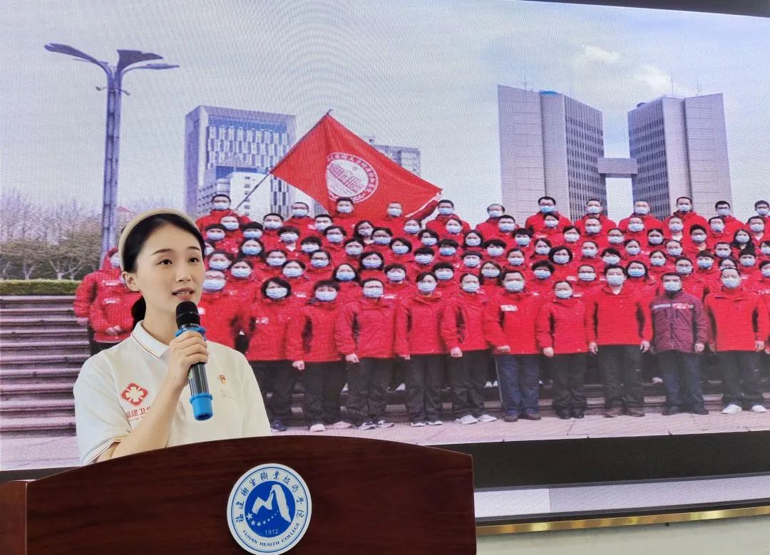 現(xiàn)就職龍巖市第二醫(yī)院的詹仕鑫校友通過云端的方式講述了他作為首批援鄂醫(yī)療隊一員,進駐武漢金銀潭醫(yī)院的故事。他目睹了武漢確診人數(shù)在短時間內(nèi)突破2萬;見證了火神山醫(yī)院在10天內(nèi)拔地而起;親歷了所有黨員面對黨旗宣誓,“隨時準備為黨和人民犧牲一切”“把最危險的工作留給黨員”的莊嚴時刻。他隨即下定決心加入中國共產(chǎn)黨,向黨組織遞交了入黨申請書。2022年,他又再次出征援滬,主動申請在最艱難、感染風險最高的脫間通道崗位,進行對所有出艙隊員的監(jiān)督把控,做方艙里的“最后一道防線”?!吧晔⑹?,何其有幸”,他鼓勵在場青年醫(yī)學生立足崗位從先輩手中接過歷史的接力棒,繼續(xù)奔跑,以實際行動迎接黨的二十大。