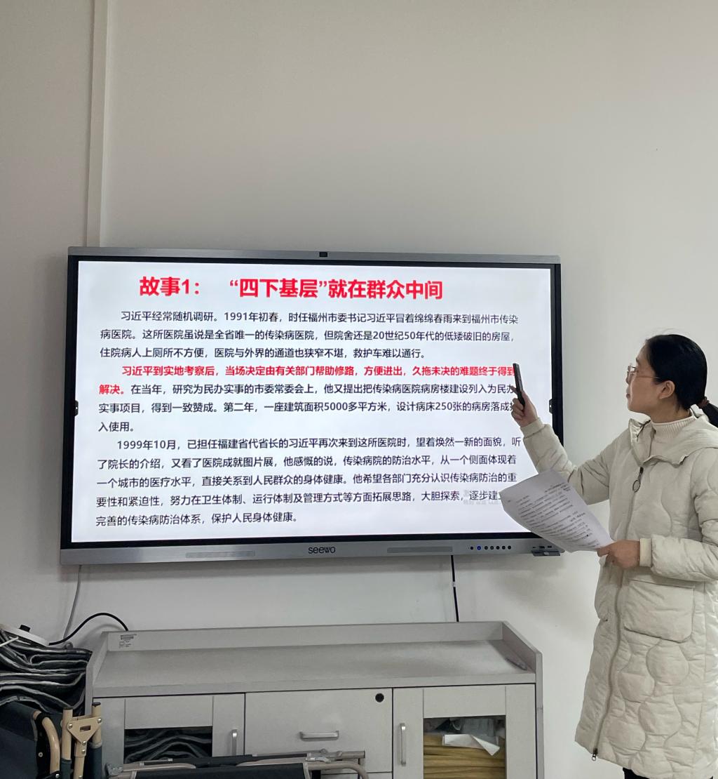 楊央同志開(kāi)展《閩山閩水物華新——習(xí)近平福建足跡》研學(xué)活動(dòng)。她分享了習(xí)近平總書(shū)記“‘四下基層’就在群眾中間”“教育決不允許等一等”“七下晉江,調(diào)研總結(jié)‘晉江經(jīng)驗(yàn)’”等故事。