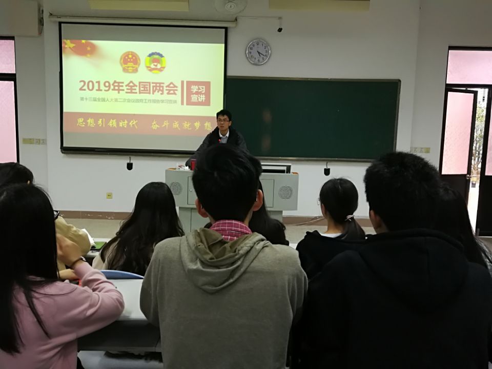 為深入貫徹2019年全國兩會精神,把全國兩會精神及時傳達(dá)到校園、傳達(dá)給廣大學(xué)生,營造廣大學(xué)生學(xué)習(xí)、踐行全國兩會精神的濃厚氛圍。3月15日,江洪老師在教學(xué)樓210開展2019年全國兩會精神學(xué)習(xí)宣講。習(xí)近平新時代中國特色社會主義思想讀書社“致遠(yuǎn)隊”成員參加了學(xué)習(xí)。