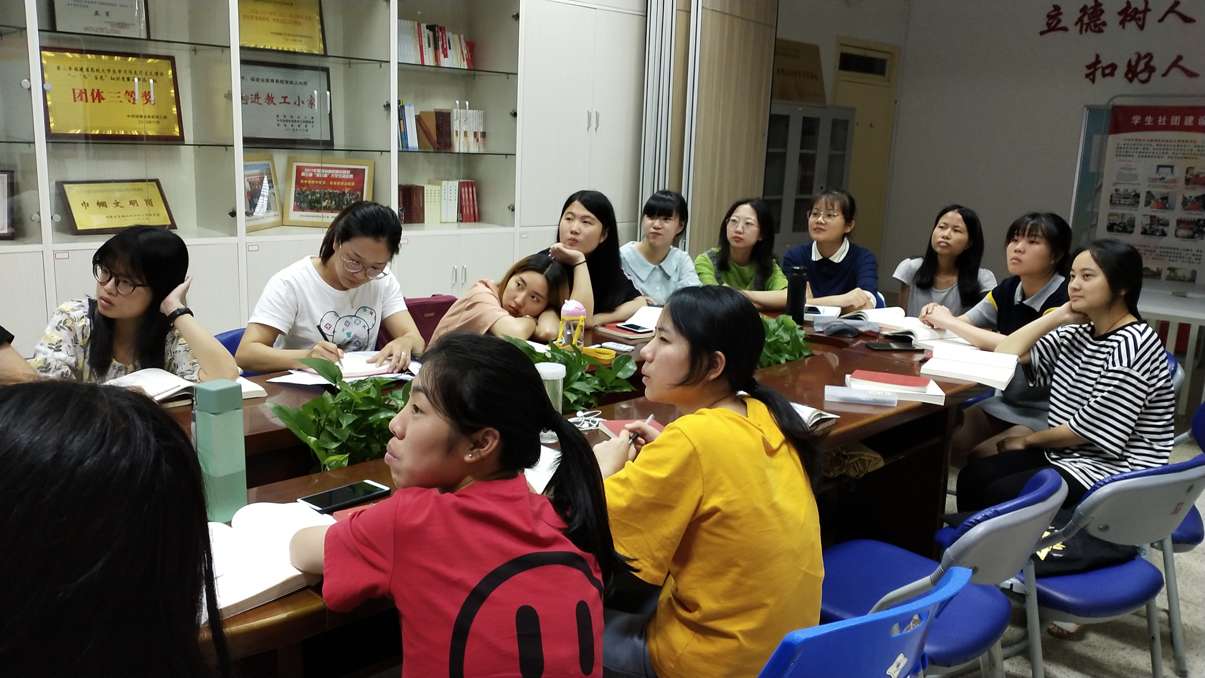 2019年是特殊的一年,是中華人民共和國成立70周年。在2019年6月15日下午,習近平新時代中國特色社會主義思想“星星隊”在馬院社團活動室107開展愛國主義專題宣講。宣講員為“星星隊”隊長林賀婷同學,出席此次宣講的有指導老師楊盈以及讀書社星星隊的同學們。