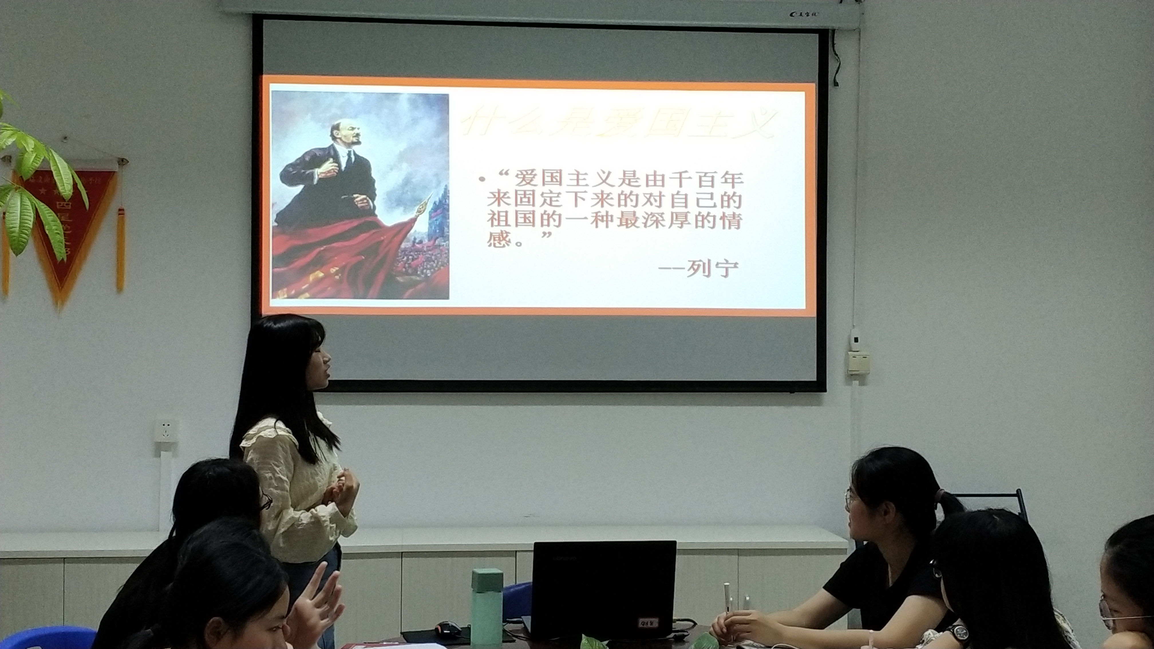 宣講員先是以一段簡短的以愛國主義為題材的電影《戰(zhàn)狼2》,引入主題,激發(fā)同學們的興趣。在以列寧一句話說明了什么是愛國主義。并介紹了愛國主義的內涵,以及新時代的愛國主義,還列舉了幾個愛國主義的故事,包括兩彈元勛鄧稼先,為人民美好生活砥礪前行的消防員以及為艾滋病人民無私奉獻的高耀潔。最后宣講員提出了醫(yī)學生應當怎樣愛國的問題,引發(fā)了同學們的思考。其中林賀婷同學認為在校醫(yī)學生最重要的是應當學好專業(yè)知識,以便于下臨床時能夠更好奉獻自己,為人民服務,還可以再臨床上發(fā)明更多方便臨床操作的小發(fā)明小創(chuàng)造。林成暢同學認為愛國不只是宏觀意義上的愛國。在日常生活中,如果有人在網(wǎng)絡上用一些低俗的詞語,詆毀我們的國家,我們應當站出來為祖國發(fā)聲。而不是任由這些人肆意的傳播網(wǎng)絡言語詆毀我們的祖國。愛國是每個公民的責任,也是義不容辭的義務。
