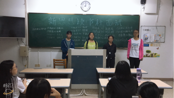 在經(jīng)過(guò)前期的社團(tuán)干事對(duì)各班級(jí)的大力宣傳和面試讀書(shū)社最終面試106人,招收新生68人。于10月24日社團(tuán)新生在教215開(kāi)展本次第一次會(huì)議。此次會(huì)議主要目的在于促進(jìn)新老生們彼此相互認(rèn)識(shí),并進(jìn)行讀書(shū)社的第一次筆試。會(huì)上,老干事們向新生做了簡(jiǎn)單的自我介紹后,新生們也向大家做了自我介紹。接著由社長(zhǎng)向新生們講解讀書(shū)的歷史和發(fā)展方向,并對(duì)他們提出一點(diǎn)小小的要求。