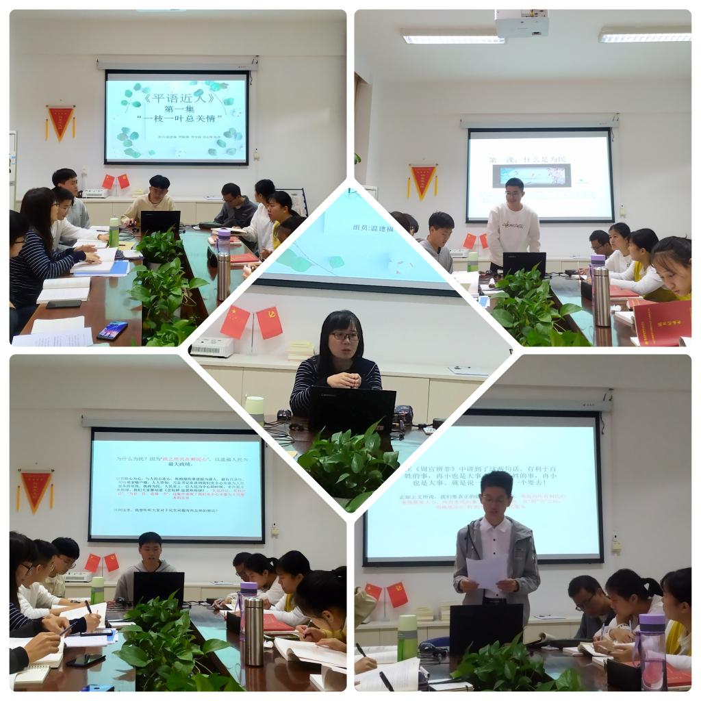 我校習(xí)近平新時(shí)代中國特色社會(huì)主義思想讀書社原夢隊(duì)(簡稱“原夢隊(duì)”),于2019年11月20日中午12點(diǎn)40分在馬克思主義學(xué)院社團(tuán)研討室在原夢隊(duì)熊美蘭老師指導(dǎo)下開展了《平語近人》之“一枝一葉總關(guān)情”的專題講解,為原夢隊(duì)成員學(xué)習(xí)習(xí)近平總書記用典起到示范表率作用。