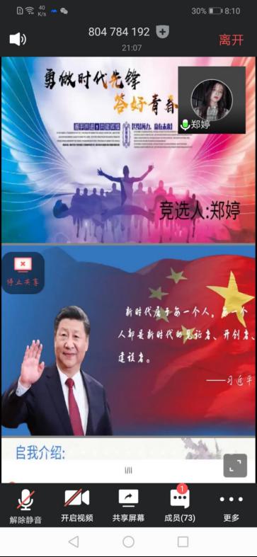 2020年4月13日下午7點(diǎn)半,由于疫情時(shí)期,我們選擇線上換屆的方式在騰訊會(huì)議app中舉行了19級(jí)“時(shí)代先鋒協(xié)會(huì)”換屆大會(huì)。丁愛(ài)芝老師和陳洪月老師出席本次大會(huì),以及時(shí)代先鋒協(xié)會(huì)的18級(jí)社長(zhǎng)、副社和各干事參加此次大會(huì)。會(huì)議由18級(jí)社長(zhǎng)盧海主持。