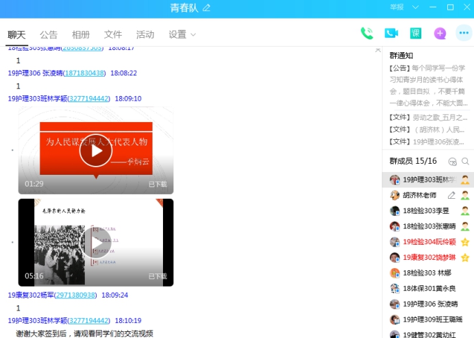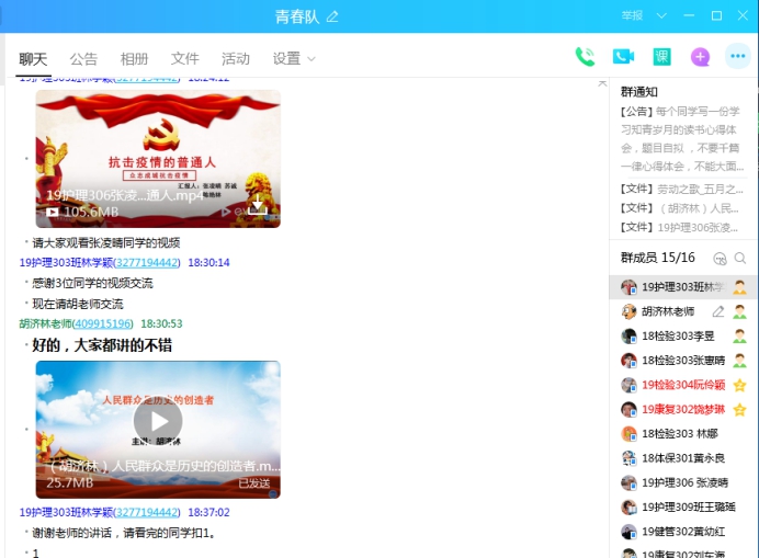 同學們在QQ進行簽到后,首先楊軍、魯麗、張凌晴3位同學分別向同學們進行了《為了人民謀發(fā)展的人大代表——季炳云》、《革命戰(zhàn)爭年代以及社會主義建設時期的人民觀》以及《抗擊疫情的普通人》的分享和交流,她們的分享讓我們明白了人民群眾是維護社會穩(wěn)定的主體力量,也是社會大局持續(xù)穩(wěn)定的源頭活水。