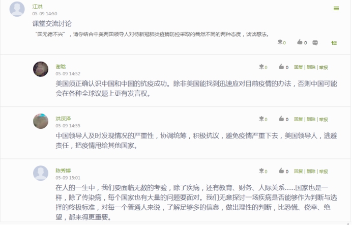 課后指導老師江洪對此次課做出總結,首先是溫故,成員們復習了“什么是官德”“為何要官德”“怎么有官德”;其次是知新,成員們了解了習近平總書記對北京大學援鄂醫(yī)療隊“90后”黨員的重要回信和五四青年節(jié)習近平總書記對青年的深情寄語,江洪老師希望大家要牢記習近平總書記的囑托,樹立遠大的理想,熱愛偉大祖國,擔當時代責任,錘煉品德修為,不斷提升自身素質(zhì),不辜負黨的期望、人民期待、民族重托!