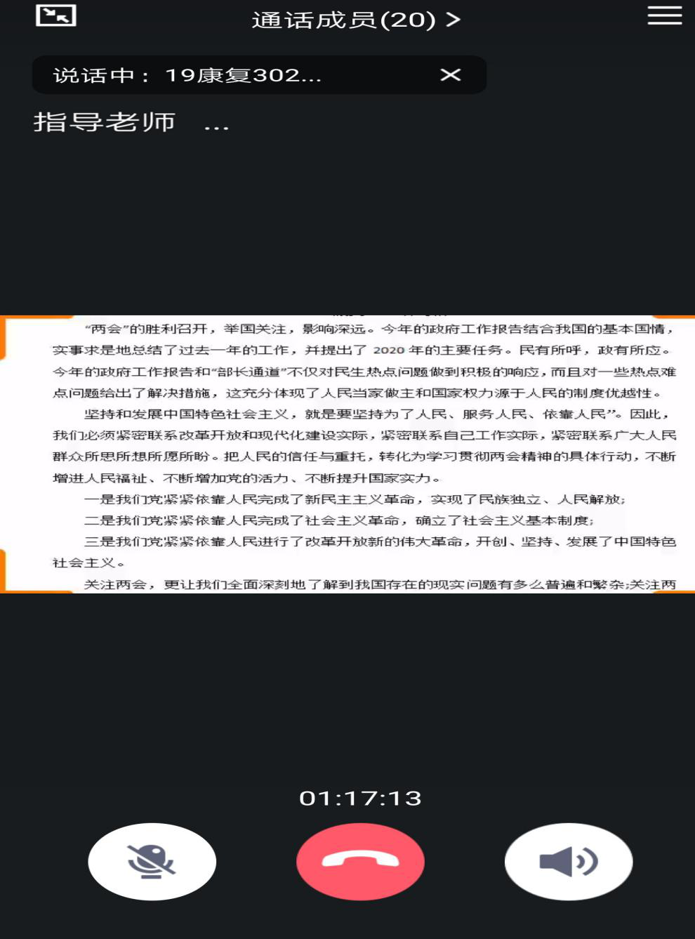 隨后,成員們輪流依次發(fā)言,談了學(xué)習(xí)2020年全國(guó)兩會(huì)精神的心得體會(huì)。賴心怡同學(xué)提到了城鄉(xiāng)發(fā)展的問(wèn)題,并結(jié)合實(shí)際,談了這幾年自己所在村子的飛速發(fā)展;陳秀婷同學(xué)對(duì)李克強(qiáng)總理的政府工作報(bào)告主要內(nèi)容進(jìn)行了梳理,并從大學(xué)生的角度,談到了大學(xué)生要關(guān)注國(guó)家大事,增強(qiáng)國(guó)家主人翁意識(shí),增強(qiáng)擔(dān)當(dāng)民族復(fù)興大任的使命感和責(zé)任感;洪深澤同學(xué)從今年中國(guó)抗擊新冠肺炎疫情的重大事件出發(fā),談到了自己對(duì)“以人民為中心”的理解;林羽晴同學(xué)則講到了今年的脫貧攻堅(jiān)戰(zhàn),堅(jiān)信我們可以如期全面建成小康社會(huì);其他同學(xué)也就自己關(guān)注的問(wèn)題展開(kāi)了交流討論。