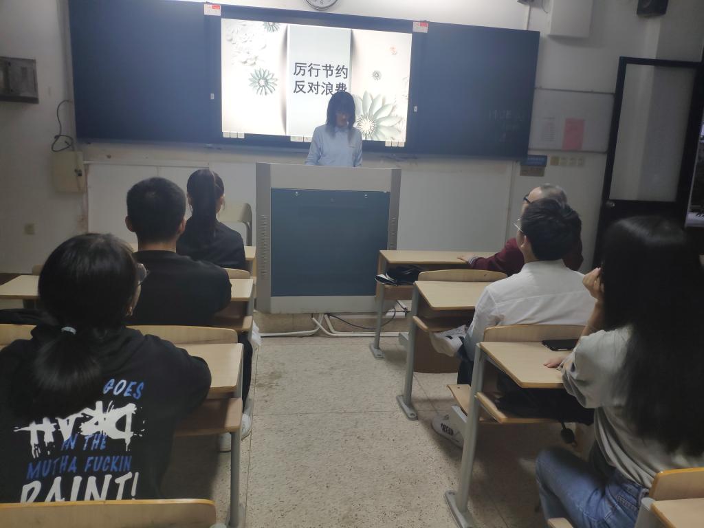 胡老師報(bào)告結(jié)束后,阮伶穎、鐘程雅以及魯麗3位同學(xué)分別進(jìn)行了《厲行節(jié)約,反對(duì)浪費(fèi)》、《光盤(pán)行動(dòng)》以及《厲行節(jié)約》的分享和交流,她們分享了“國(guó)以?xún)€得之,以奢失之”的觀念,講述了生活中常見(jiàn)的浪費(fèi)現(xiàn)象、提出節(jié)約的倡議以及闡明作為大學(xué)生的我們?cè)撊绾巫觥?/p>