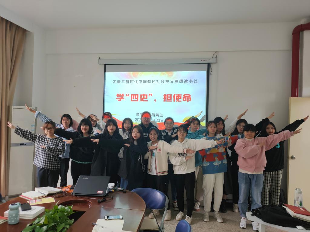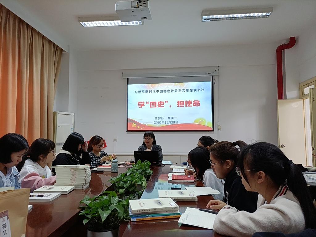 習(xí)近平新時代中國特色社會主義思想讀書社原夢隊于2020年11月30日在馬院社團研討室集中學(xué)習(xí),開展題為《學(xué)“四史”,擔(dān)使命》的主題學(xué)習(xí)。