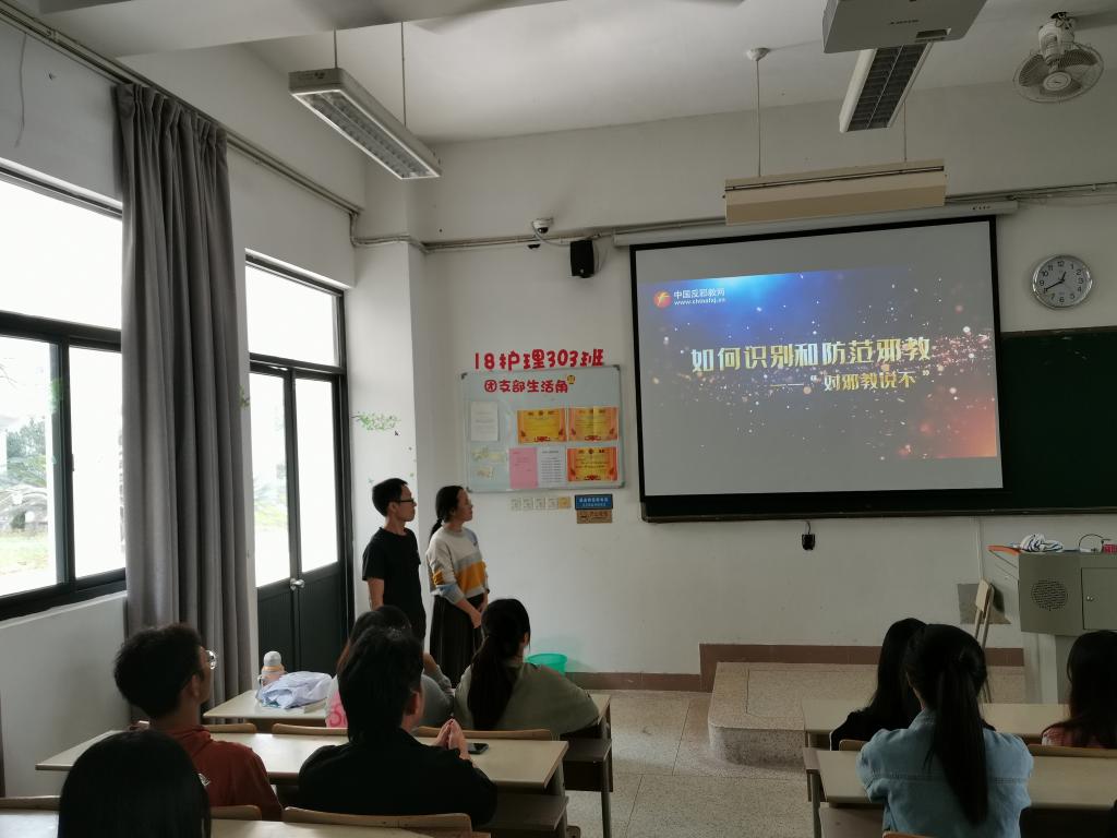 活動第一環(huán)節(jié),社團(tuán)全體成員同社團(tuán)指導(dǎo)老師龍慧老師、張?zhí)煳睦蠋熞煌^看了反邪教視頻《如果識別和防范邪教——“對邪教說不”》,讓隊(duì)員們了解到了什么是邪教、邪教組織的特征、邪教的危害、當(dāng)前我國較為活躍的邪教組織等幾個方面的內(nèi)容。同時(shí),社團(tuán)老師龍慧老師指出:作為DIY社團(tuán),在舉辦活動時(shí),我們要明確活動主題,把握好社團(tuán)方向,做到特色文化創(chuàng)意與優(yōu)秀文化傳承相融合。