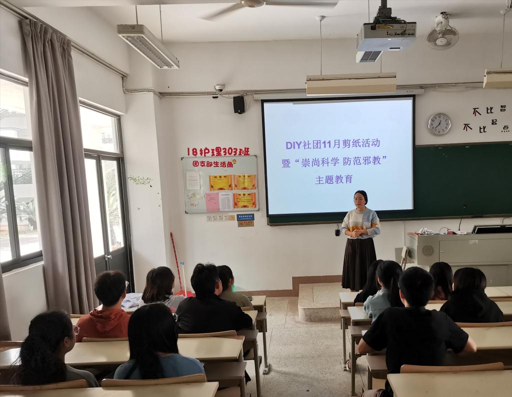 為了傳承優(yōu)秀傳統(tǒng)文化,崇尚科學(xué),防范邪教,經(jīng)過一周的精心策劃和準(zhǔn)備,于2020年11月30日DIY社團(tuán)在214教室舉行“生肖剪紙,歡樂多暨崇尚科學(xué),防范邪教”社團(tuán)活動。