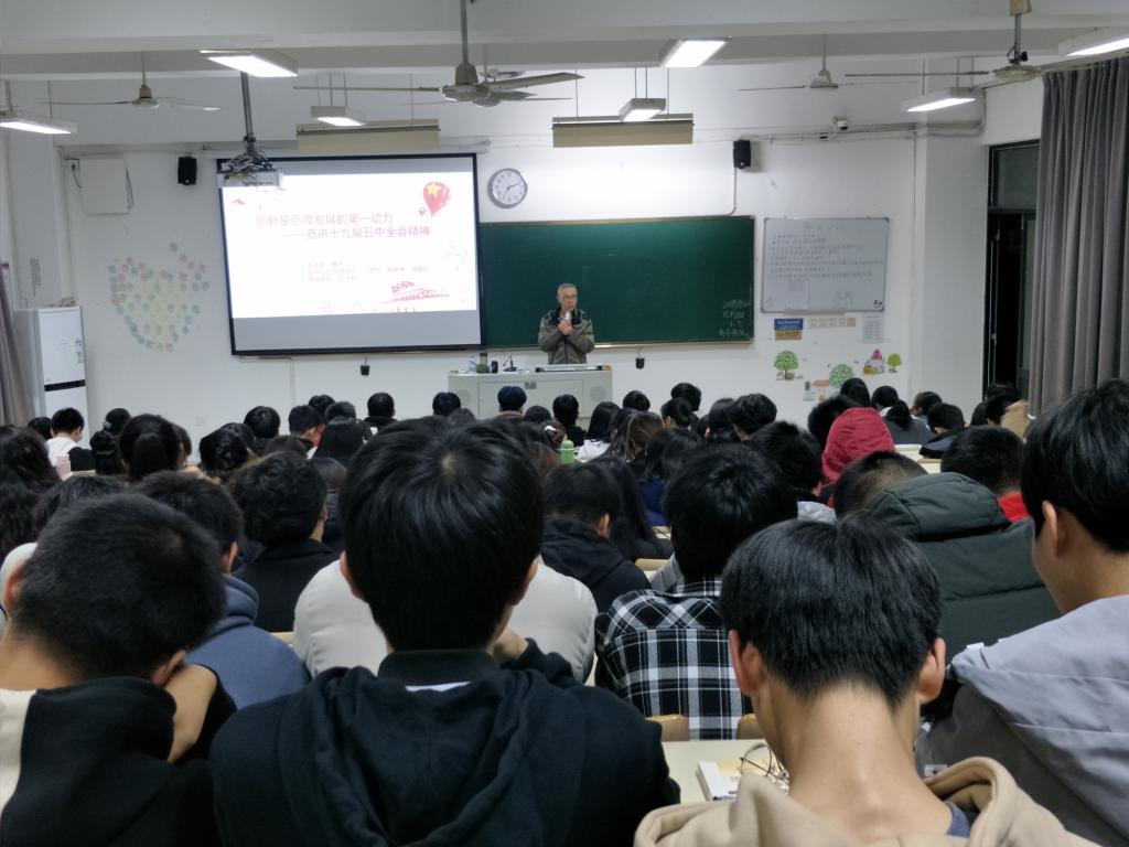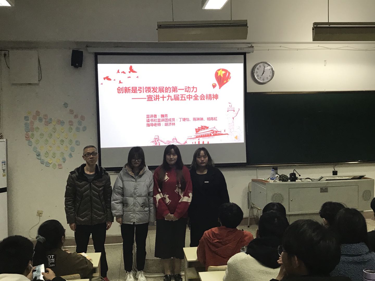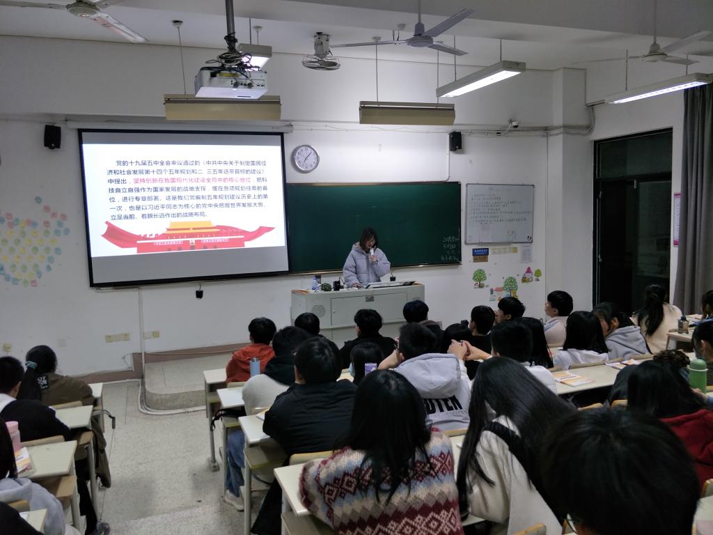2021年1月6日晚上,習(xí)近平新時代中國特色社會主義思想讀書社宣講團在胡濟林老師組織下,在教學(xué)樓311為20設(shè)備301、302、影像304班舉行“創(chuàng)新是引領(lǐng)發(fā)展的第一動力”黨的十九屆五中全會精神第二次對外宣講。