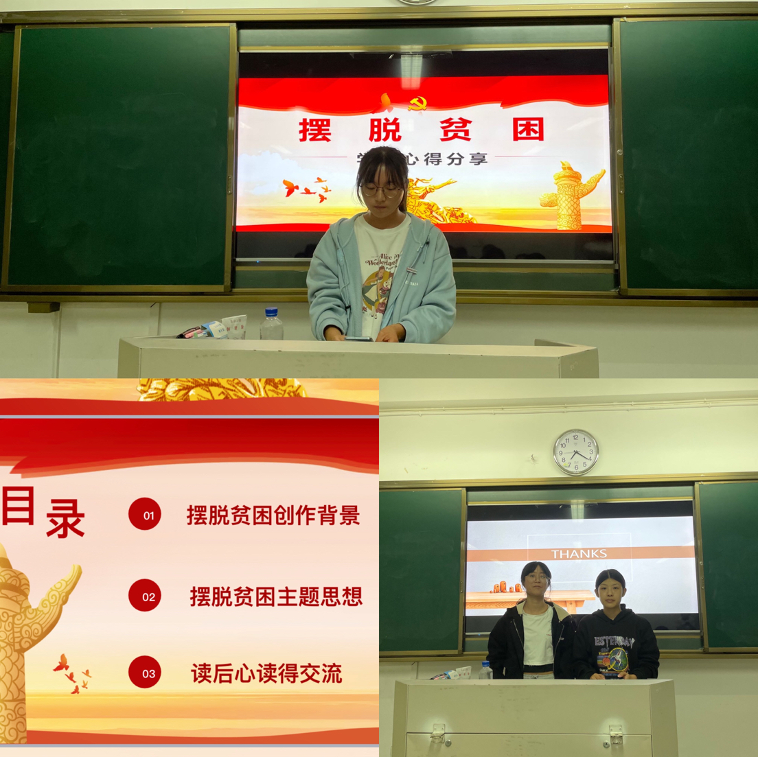 2021年4月20日晚,習(xí)近平新時代中國特色社會主義思想讀書社夢之隊在教學(xué)樓304開展了本學(xué)期的最后一次選修課,此次課依然由夢之隊指導(dǎo)老師鄭冰主持,由全體社團成員分享大家學(xué)習(xí)《擺脫貧困》的心得體會。