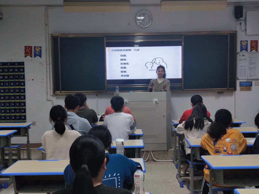 課程從唯物辯證法出發(fā),結(jié)合辯論理論和技巧循序漸進(jìn),從辯論要求、思路、態(tài)度到立論、質(zhì)詢、結(jié)辯技巧,四次理論課程干活滿滿,幫忙同學(xué)們構(gòu)建起對(duì)辯論思路的辯證思維的基本認(rèn)識(shí)。