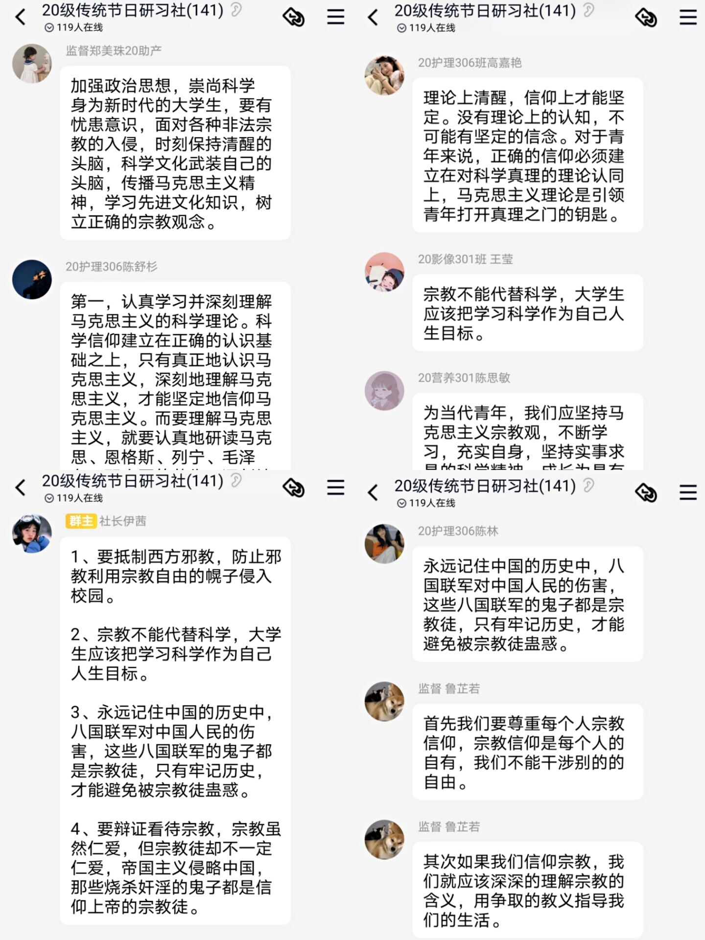 宣講結(jié)束后,社團干事通過展示ppt來列舉一些校園非法傳教的案例,進一步提高同學(xué)們對邪教的警惕心,提醒同學(xué)們在遇到校園一些非法傳教活動時第一時間報告老師,從而免受詐騙。社團成員們也對作為當(dāng)代大學(xué)生,應(yīng)該如何樹立馬克思主義的宗教觀,表達了自己的想法。