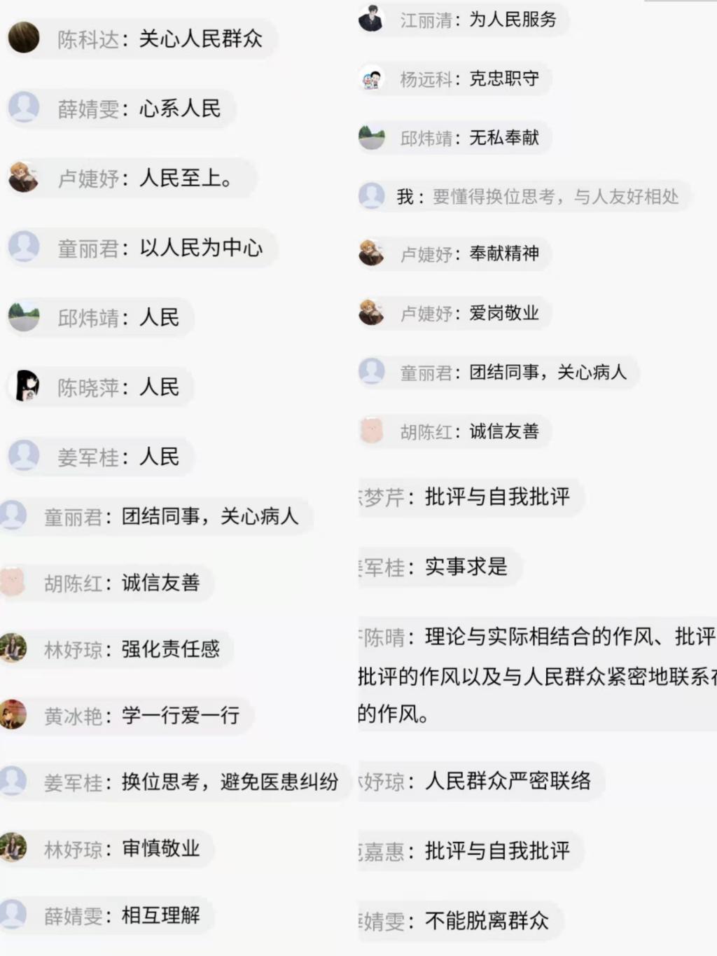 通過學(xué)習(xí),同學(xué)們頗有感觸,紛紛表示在以后的工作中要做到為人民服務(wù)、相互理解、愛崗敬業(yè),不斷提高自己的綜合素質(zhì),為國家發(fā)展貢獻自己的一份力量。