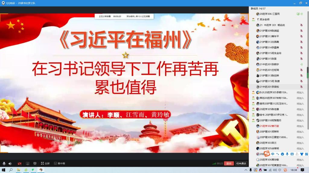 2022年3月28日下午,因?yàn)橐咔橛忠淮渭又?,夢之?duì)的成員們?nèi)缂s聚集在線上,本次學(xué)習(xí)由夢之隊(duì)指導(dǎo)老師鄭冰主持,全體讀書社夢之隊(duì)成員參加,由李順、江雪而、黃玲敏三位同學(xué)主講。