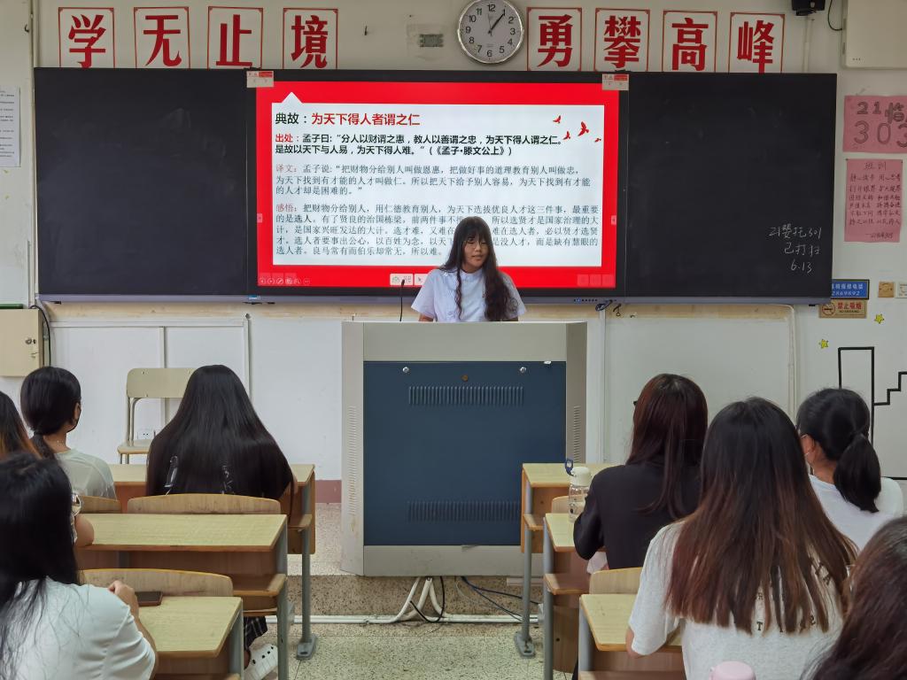 活動(dòng)伊始,由致遠(yuǎn)隊(duì)隊(duì)長(zhǎng)陳曉萍同學(xué)為我們講解習(xí)近平總書記近日發(fā)表的重要文章《堅(jiān)定不移走中國人權(quán)發(fā)展道路,更好推動(dòng)我國人權(quán)事業(yè)發(fā)展》中所引用的典故,包括“古之為政,愛人為大”“為天下得人者謂之仁”“天生萬物,唯人為貴”“濟(jì)大事者,必以人為本”“治天下者,以人為本”等經(jīng)典,深入闡述了中國傳統(tǒng)文化以民為本的重要精神和中國共產(chǎn)黨始終堅(jiān)持以人為本、全心全意為人民服務(wù)的寶貴品格。