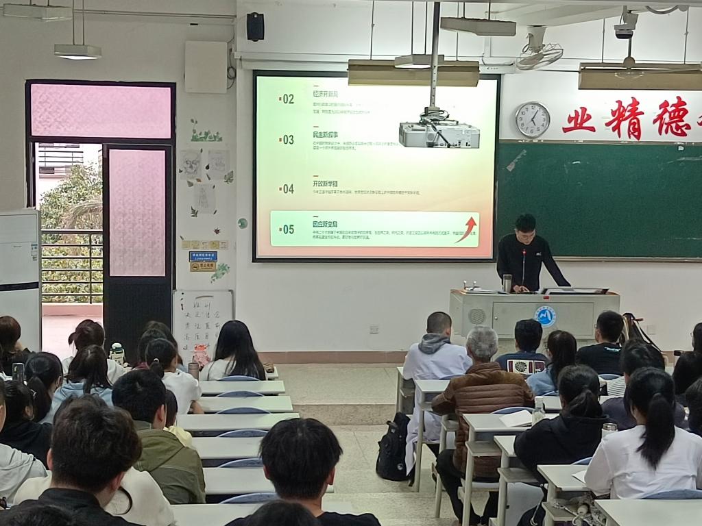 今年的全國(guó)兩會(huì)是在全面貫徹落實(shí)黨的二十大精神開局之年、踏上實(shí)現(xiàn)第二個(gè)百年奮斗目標(biāo)新征程的重要時(shí)刻召開的盛會(huì),是全國(guó)人民政治生活中的一件大事,2023年3月21日,習(xí)近平新時(shí)代中國(guó)特色社會(huì)主義思想讀書社宣講團(tuán)成員在胡濟(jì)林老師的組織下,到教學(xué)樓209為22檢驗(yàn)301、302班、22藥品質(zhì)量與安全301班同學(xué)開展線下宣講交流。