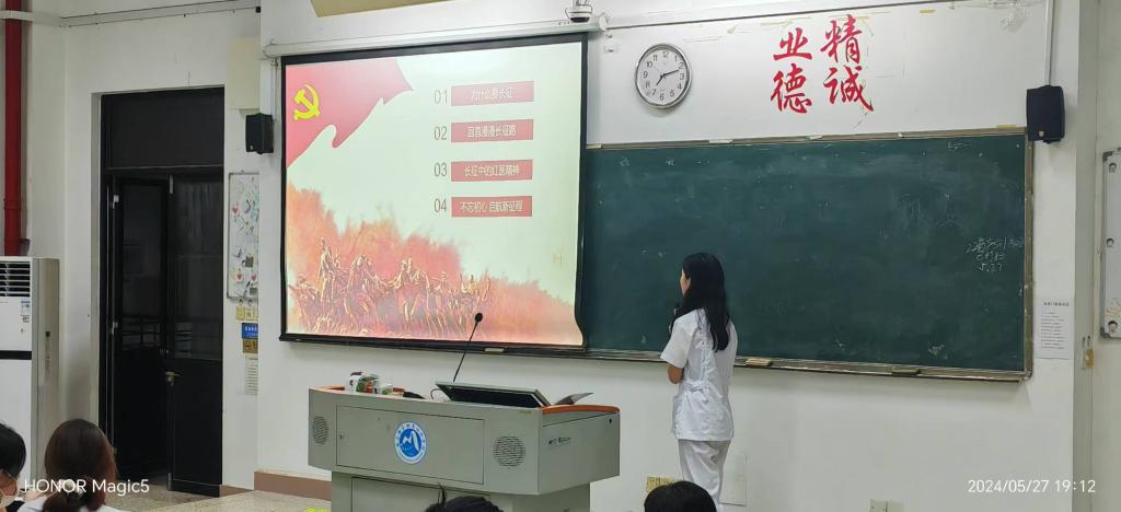 本次宣講人是23護理310班黃秋玲,宣講的主題是“浴血百年路 啟航新征程”。黃秋玲首先通過視頻介紹了長征精神,其次重點宣講了長征中的紅醫(yī)精神。通過宣講,讓同學們對于長征、長征精神以及長征中的紅醫(yī)精神有了一個更為深入的了解,她表示,作為新時代醫(yī)學生,要傳承和發(fā)揚長征精神、紅醫(yī)精神,走好我們這一代人的長征路。