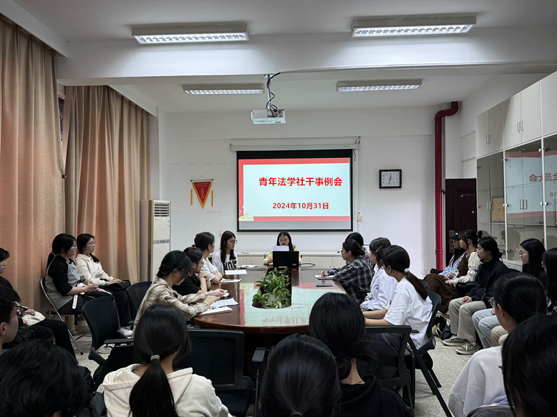 2024年10月31日,在厚德樓107會議室順利召開青年法學社干事例會,會議由指導老師鄒亞彤主持,鄭冰老師、陳菲菲社長、許靜雯、李浩東副社長以及全體干事參與會議。