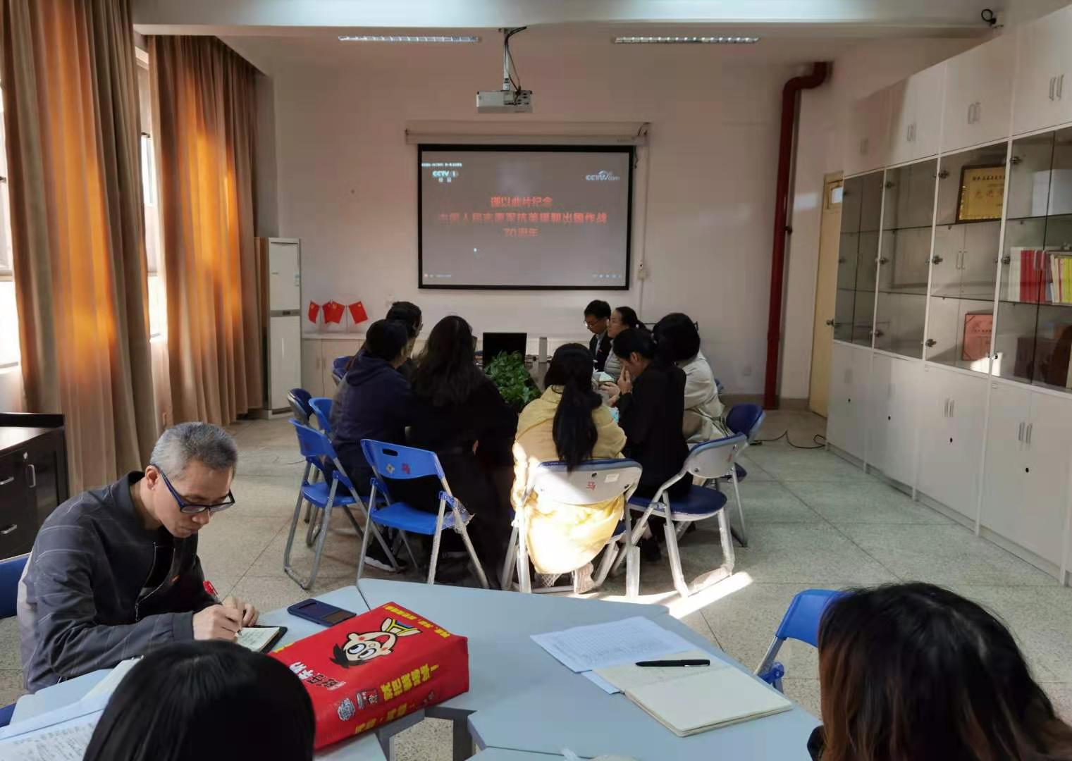為深入貫徹落實(shí)習(xí)近平總書記在紀(jì)念中國(guó)人民志愿軍抗美援朝出國(guó)作戰(zhàn)70周年大會(huì)上的重要講話精神,深入開展“四史”學(xué)習(xí)教育,大力弘揚(yáng)偉大的抗美援朝精神,2020年12月3日,直屬馬克思主義學(xué)院黨支部開展主題黨日活動(dòng),組織支部全體教師黨員在行政樓107會(huì)議室集中觀看學(xué)習(xí)了專題紀(jì)錄片《為了和平》。