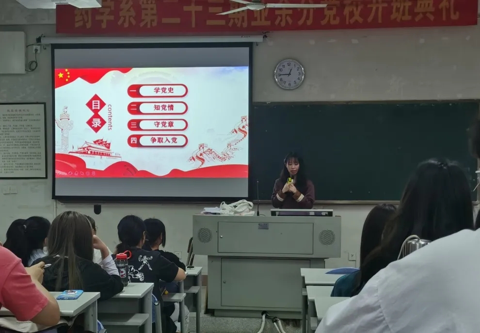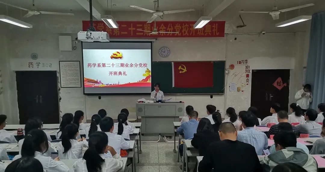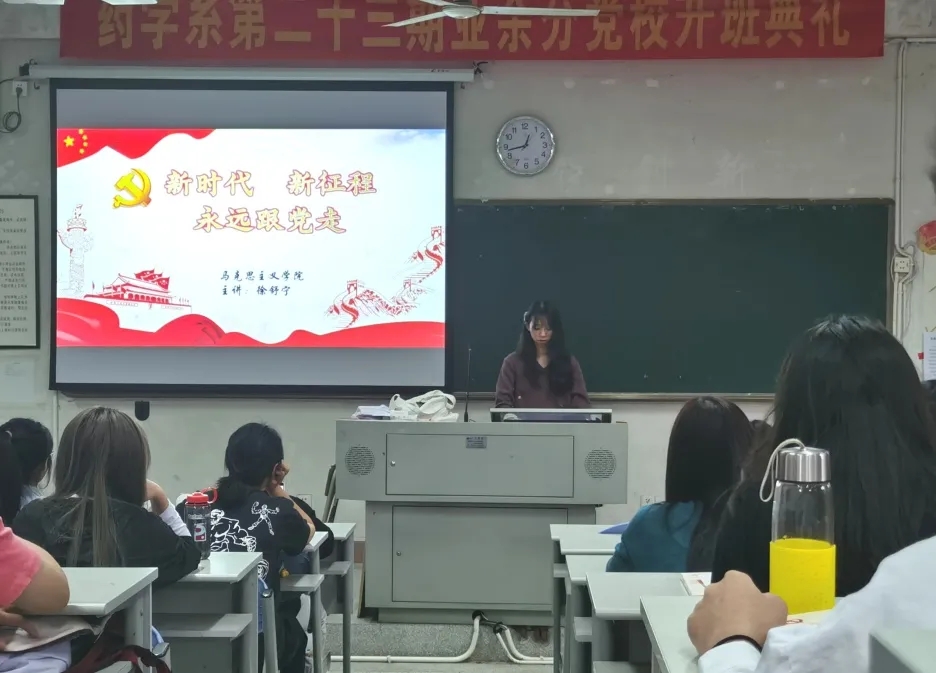 2020年10月19日,馬克思主義學(xué)院陳洪月、徐舒寧老師受邀參加藥學(xué)系第二十三期業(yè)余分黨校開班典禮。次日,馬克思主義學(xué)院徐舒寧老師在藥學(xué)系第一階梯教室為藥學(xué)系百余名業(yè)余分黨校學(xué)生進(jìn)行入黨啟蒙教育。