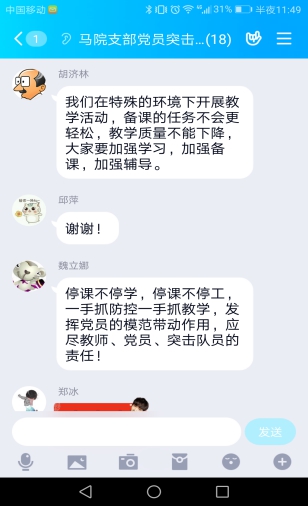 為進(jìn)一步做好新型冠狀病毒疫情防控工作,根據(jù)學(xué)校疫情防控工作領(lǐng)導(dǎo)小組的工作部署,2020年2月19日晚,直屬馬克思主義學(xué)院黨支部通過QQ線上平臺召開全體黨員學(xué)習(xí)教育會。會議由黨支部副書記來朋珍主持,馬院全體教師黨員參加了會議。