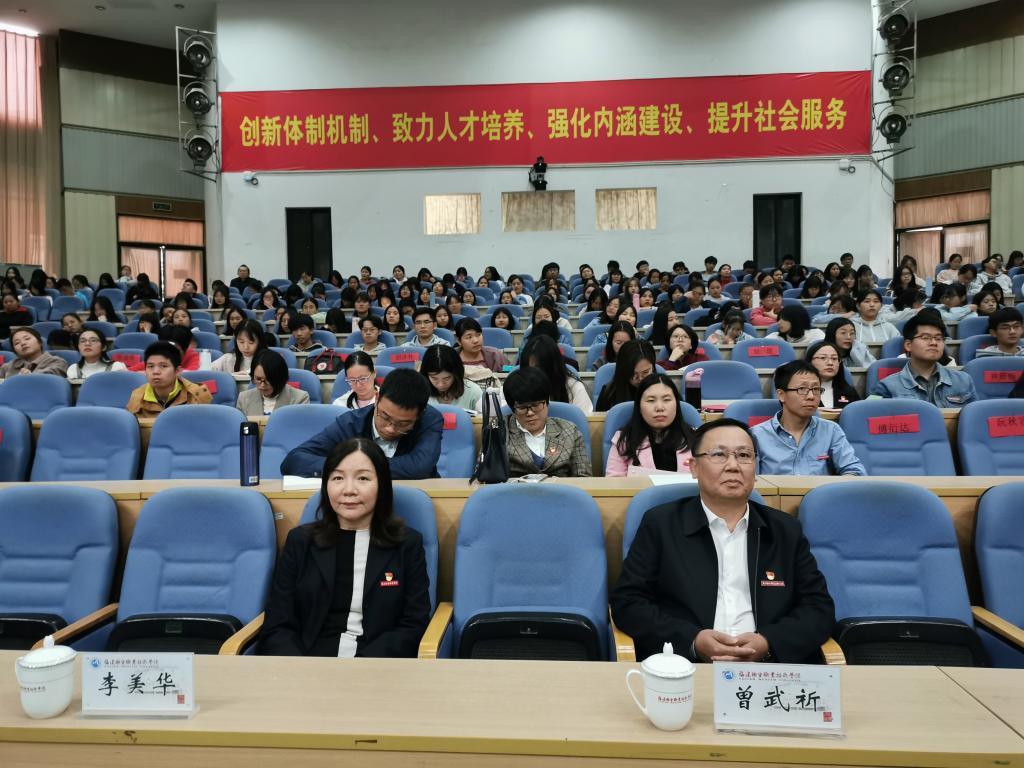 為深入開(kāi)展“不忘初心、牢記使命”主題教育,增強(qiáng)我校師生的初心使命意識(shí)和勇于擔(dān)當(dāng)作為的歷史責(zé)任感、使命感和緊迫感,2019年11月28日下午,我?!靶l(wèi)院之原”馬克思主義論壇在學(xué)術(shù)報(bào)告廳舉行。本次論壇邀請(qǐng)福建江夏學(xué)院馬克思主義學(xué)院院長(zhǎng)郭健彪教授為我校師生“新時(shí)代中國(guó)的發(fā)展大戰(zhàn)略及當(dāng)下面對(duì)的國(guó)際環(huán)境”專題講座。講座由校黨委書(shū)記曾武祈主持,校黨委副書(shū)記李美華、各系部黨總支書(shū)記、副書(shū)記、學(xué)工處主要領(lǐng)導(dǎo)、團(tuán)委主要領(lǐng)導(dǎo)、全體輔導(dǎo)員、馬院全體教師、護(hù)理系學(xué)生代表、健康管理系學(xué)生代表及社團(tuán)學(xué)生代表參加了此次活動(dòng)。