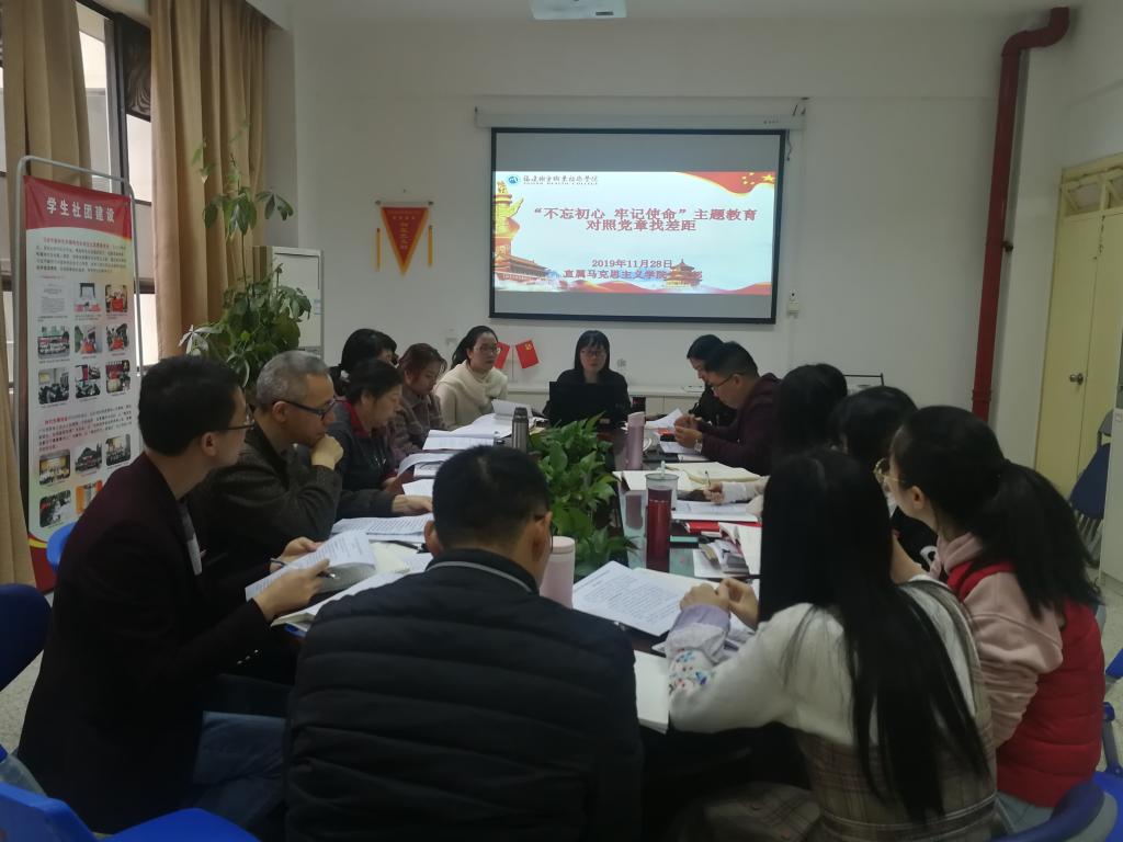 2019年11月28日上午,直屬馬克思主義學(xué)院黨支部在行政樓107會議室召開“不忘初心、牢記使命”主題教育對照黨章黨規(guī)找差距專題會議。會議由直屬馬克思主義學(xué)院黨支部書記熊美蘭主持,黨支部全體黨員參加。