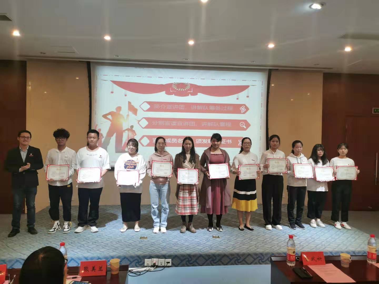 校黨委書記曾武祈對講解隊的成立表示熱烈祝賀,在大會上作了重要講話,他表示三館講解隊的成立將會進(jìn)一步推動我們學(xué)習(xí)貫徹宣傳習(xí)近平新時代中國特色社會主義思想,同時也傳承中華優(yōu)秀傳統(tǒng)文化和革命文化,有利于學(xué)習(xí)宣講從校園走向社會、從課堂走向民眾,意義重大,希望老師和同學(xué)們能夠更進(jìn)一步地深入基層了解我們的黨情、國情、社情,堅定信仰、錘煉意志、增長見識、學(xué)好本領(lǐng),更好地奉獻(xiàn)才干、服務(wù)社會。