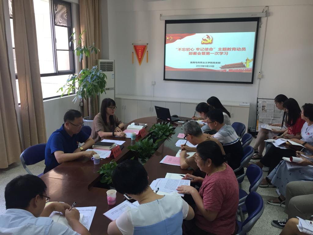 9月19日下午,直屬馬克思主義學(xué)院黨支部在行政樓107會議室召開“不忘初心、牢記使命”主題教育動員部署會。學(xué)院主題教育巡回指導(dǎo)一小組組長、學(xué)院黨委書記曾武祈同志,巡回指導(dǎo)一小組成員、黨委工作部部長吳華同志,以及馬克思主義學(xué)院全體黨員參加會議。會議由直屬馬克思主義學(xué)院黨支部書記熊美蘭主持。