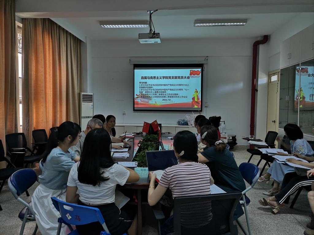 2021年7月8日上午,直屬馬克思主義學(xué)院黨支部在行政樓107會議室召開黨員大會暨第二季度意識形態(tài)專題工作會。會議由黨支部書記熊美蘭同志主持,黨支部全體黨員同志參加了會議。