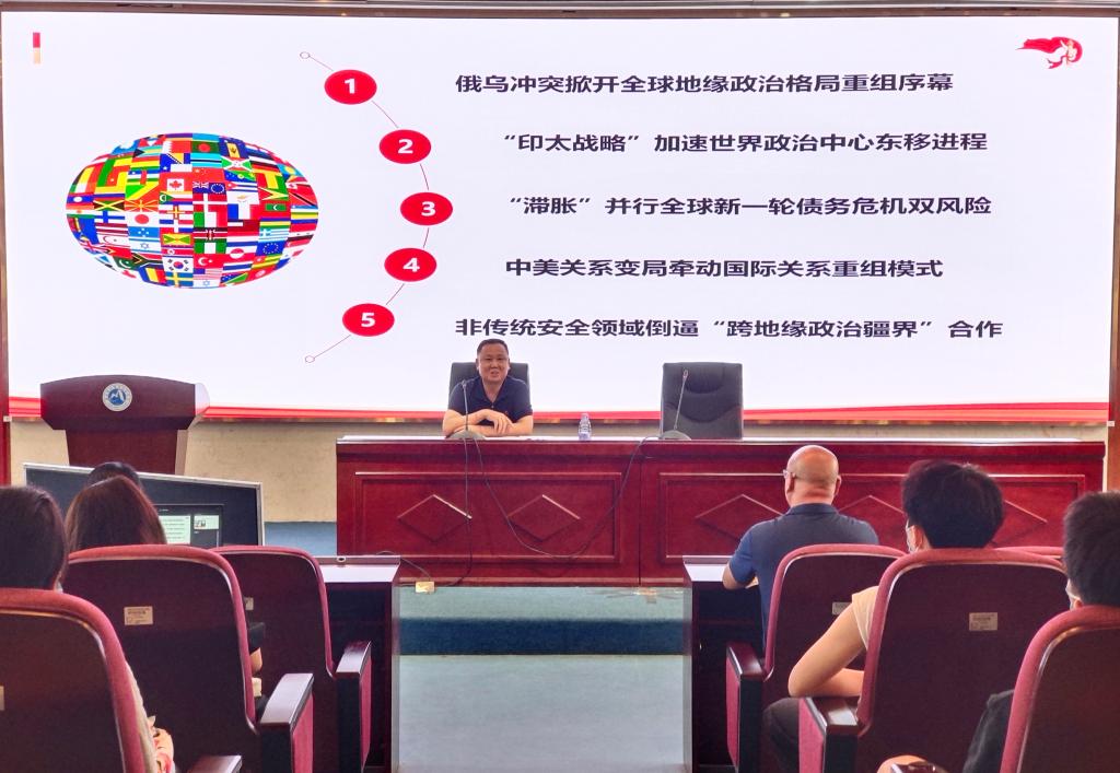 曾武祈著重梳理了當(dāng)前復(fù)雜多變的國際局勢(shì)、黨和國家面臨的安全挑戰(zhàn)及其背后動(dòng)因,為黨員們帶來了一堂理論深刻、視野開闊、內(nèi)容豐富,極具吸引力和感染力的黨課。在他的講述中,全體黨員充分感受到了中國在全球變局中化危為機(jī)、勇毅前行的卓越能力。曾武祈指出,黨的二十大必將擘畫發(fā)展新藍(lán)圖,贏得更加偉大的勝利和榮光。廣大黨員教師應(yīng)比以往更加堅(jiān)定地迎接世界的變革與挑戰(zhàn),以實(shí)際行動(dòng)詮釋自己對(duì)國家和民族的責(zé)任和擔(dān)當(dāng)。