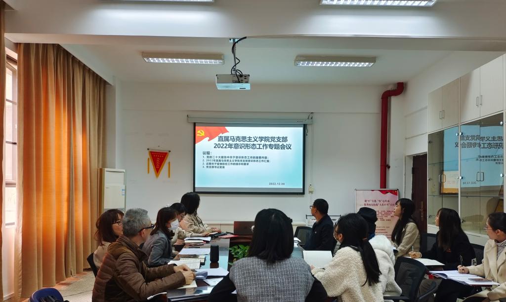 2022年12月8日上午,直屬馬克思主義學(xué)院黨支部在會議室107開展意識形態(tài)專題會議,活動由黨支部書記熊美蘭主持。