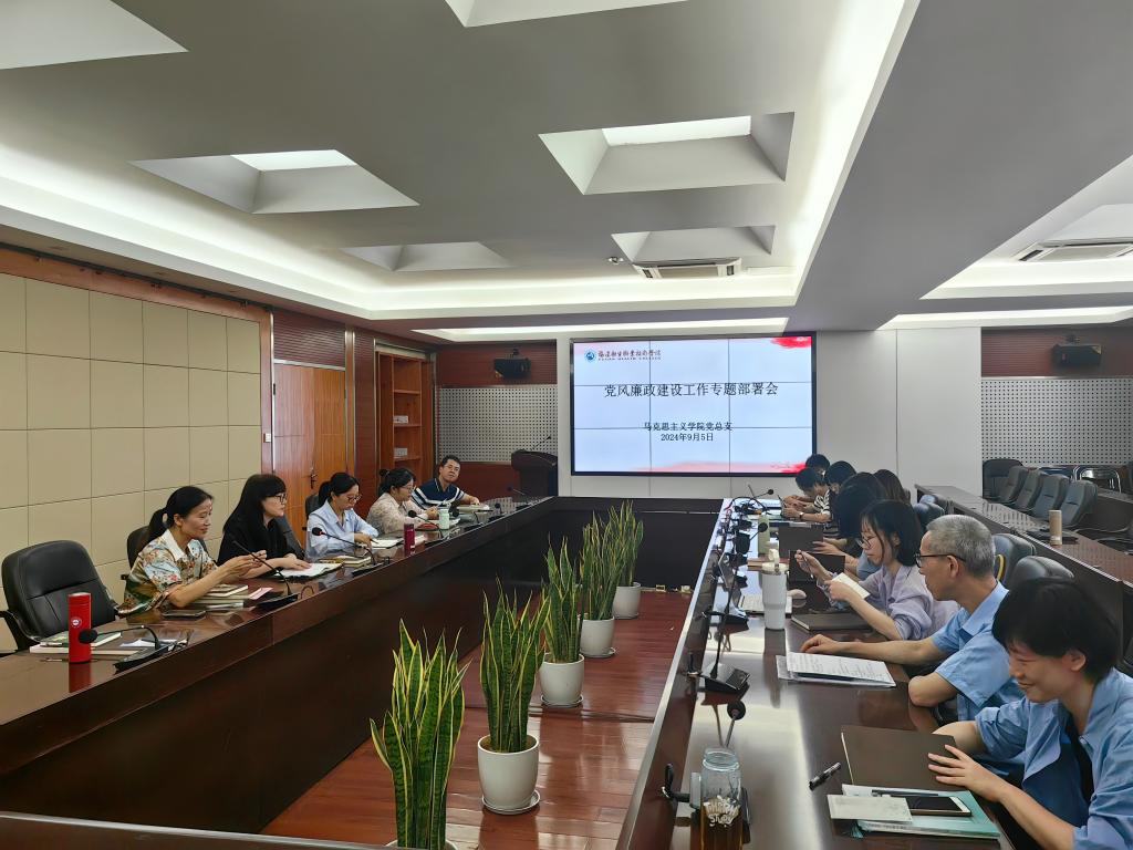 為貫徹落實黨的二十屆三中全會精神,深入學習貫徹習近平總書記關(guān)于黨的自我革命的重要思想,9月5日,馬克思主義學院黨總支在厚德樓四樓會議室開展黨風廉政建設工作專題部署會。研究新學期黨風廉政建設工作,并開展警示教育。