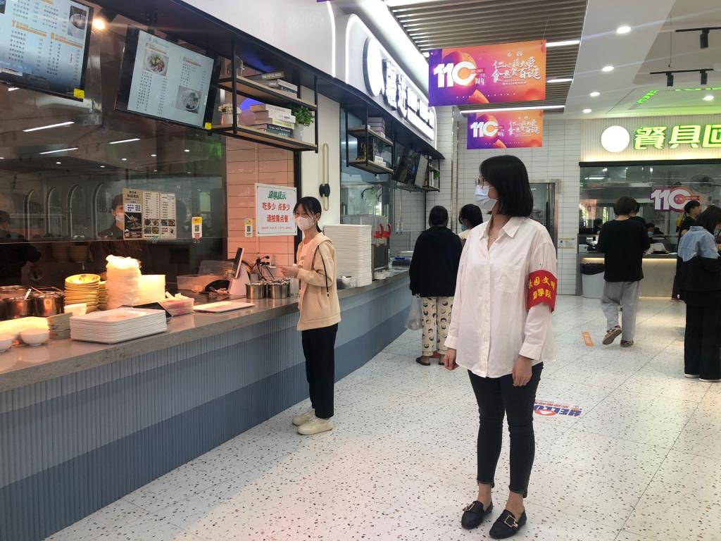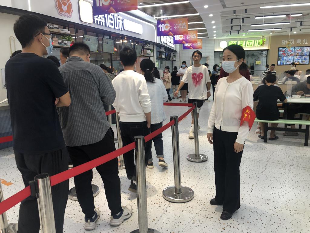 宣傳教育突擊隊(duì)在各個(gè)食堂區(qū)域迅速集結(jié),主動(dòng)開(kāi)展黨員志愿服務(wù),積極投入到秩序維護(hù)、防疫督導(dǎo)等各項(xiàng)工作中,以實(shí)際行動(dòng)守護(hù)校園安全。