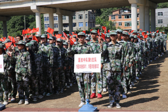 陳彥名同學(xué)作為新生代表發(fā)言,她首先代表全體新生,感謝各位領(lǐng)導(dǎo)、教官、老師不畏艱辛、不畏酷暑陪伴他們度過難忘的軍訓(xùn)第一課!同時也感謝同學(xué)們,為自己克服天氣炎熱,刻苦訓(xùn)練而點贊。她說,我們應(yīng)當(dāng)積極鉆研自己的專業(yè),學(xué)有所成,為我國的醫(yī)療健康事業(yè)助力。