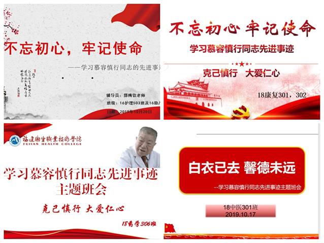 我校全體輔導(dǎo)員在1017日參加學(xué)院隆重舉行的“不忘初心、牢記使命”主題教育之身邊先進(jìn)典型學(xué)習(xí)活動(dòng)——慕容慎行同志先進(jìn)事跡報(bào)告會(huì)后,受慕容慎行同志作為人民好醫(yī)生、人民好教師的崇高品格和精神風(fēng)貌所感染,及時(shí)積極將學(xué)習(xí)精神通過(guò)開(kāi)展學(xué)習(xí)慕容慎行先進(jìn)事跡主題班會(huì)的形式傳達(dá)給學(xué)生們。在1020日晚的輔導(dǎo)員班會(huì)課上,輔導(dǎo)員們備上報(bào)告會(huì)錄像資料和各自認(rèn)真準(zhǔn)備的PPT等班會(huì)資料,為學(xué)生們傳達(dá)“慕容”精神。