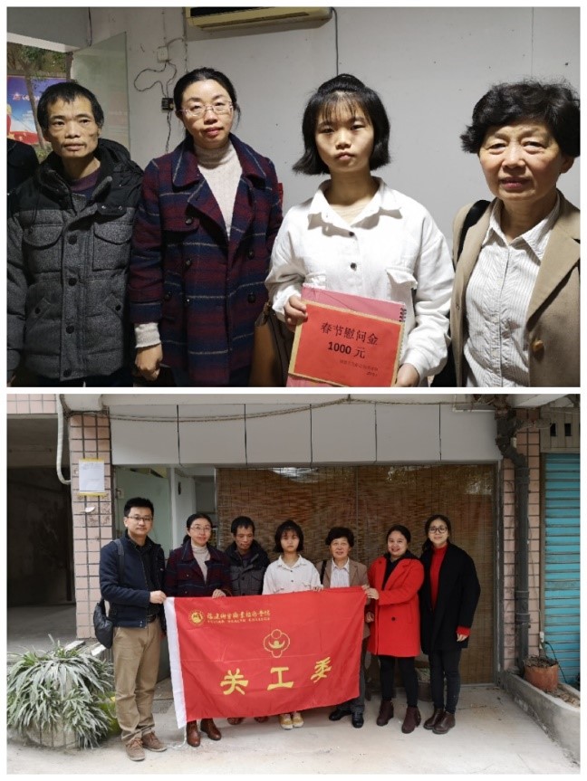 副校長(zhǎng)、關(guān)工委副主任黃銘珊、關(guān)工委主任嚴(yán)肅、副主任陳雄、副主任黃開(kāi)良以及各系二級(jí)關(guān)工委老同志,在學(xué)生工作處和各系的陪同下,來(lái)到貧困學(xué)生家里或?qū)嵙?xí)單位,深入了解貧困學(xué)生家庭情況,送上慰問(wèn)金和慰問(wèn)品,給他們帶去節(jié)日的問(wèn)候及溫暖。