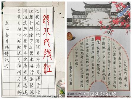 同學(xué)們還通過誦讀抗疫詩文,以詩文致敬“逆行”勇士,用誦讀禮贊中華兒女不屈不撓、團(tuán)結(jié)向上的精神。