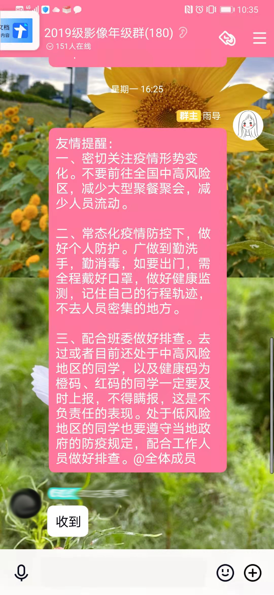 傳達(dá)疫情防控注意事項(xiàng)