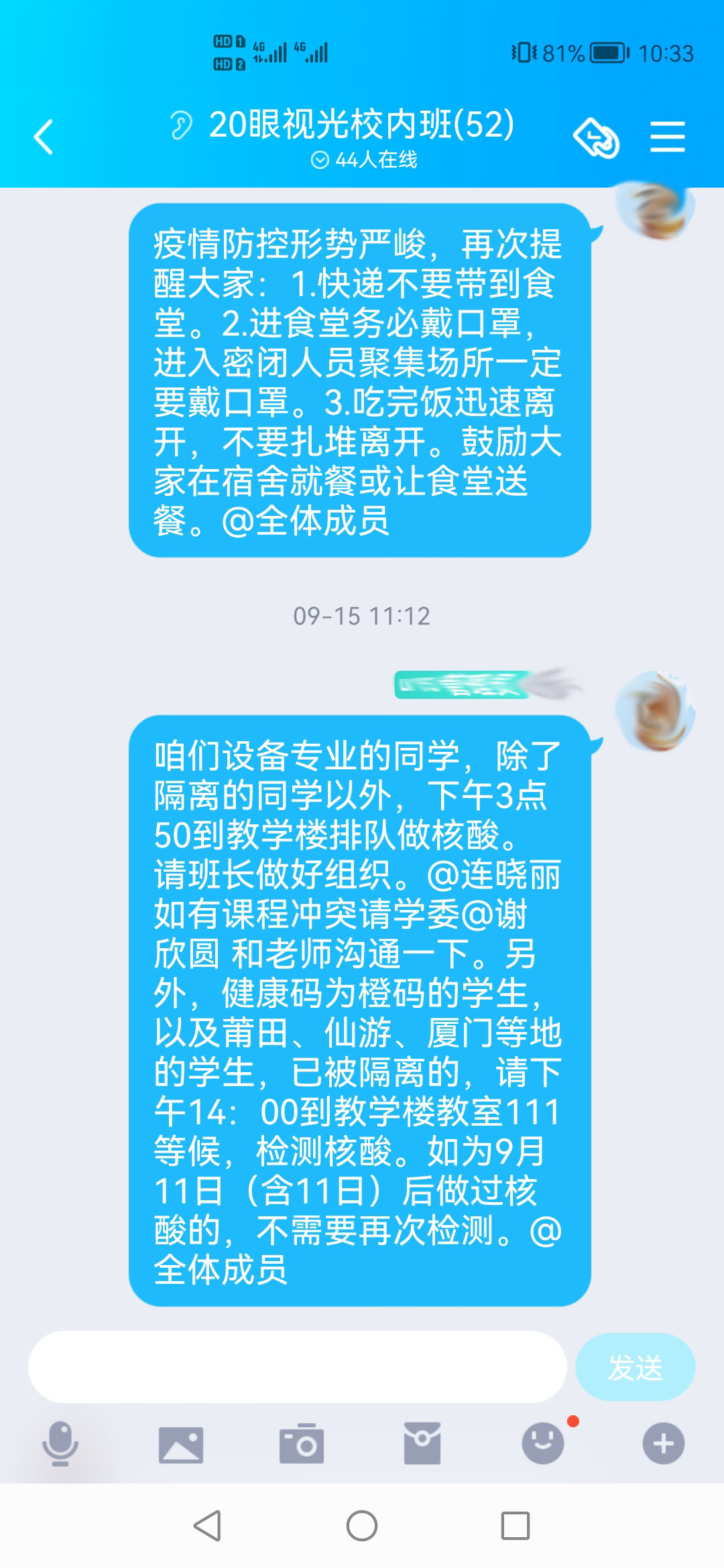 時(shí)刻關(guān)心被隔離學(xué)生