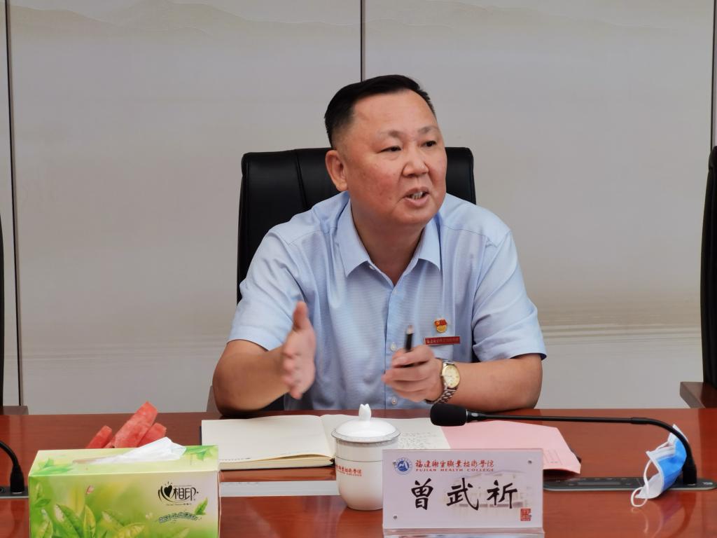 曾武祈對(duì)高本貫通學(xué)生來(lái)校學(xué)習(xí)表示祝賀和歡迎,并送上節(jié)日問(wèn)候。他詳細(xì)了解學(xué)生的飲食、生活習(xí)慣,同時(shí)表示對(duì)學(xué)生所提的建議會(huì)要求相關(guān)部門抓緊落實(shí)整改。同時(shí),對(duì)學(xué)生提出三點(diǎn)殷切期盼。一是要有家國(guó)情懷,要把個(gè)人命運(yùn)與國(guó)家、民族和社會(huì)的命運(yùn)融合在一起,要愛國(guó)、愛黨、愛學(xué)校、愛家人、愛自己,講擔(dān)當(dāng),做奉獻(xiàn)。二是要有人文關(guān)懷,“醫(yī)學(xué)是人學(xué),醫(yī)道重溫度”,其本質(zhì)就是人文關(guān)懷,需要尊重生命,幫助他人,關(guān)愛社會(huì),作為醫(yī)學(xué)生要弘揚(yáng)我國(guó)醫(yī)者仁心的傳統(tǒng)美德;三是要攬技入懷,秉承業(yè)精德誠(chéng)的校訓(xùn)精神,努力學(xué)習(xí)專業(yè)知識(shí),掌握精湛的醫(yī)學(xué)技術(shù),時(shí)刻牢記醫(yī)者初心,不辱醫(yī)學(xué)生救死扶傷的使命。