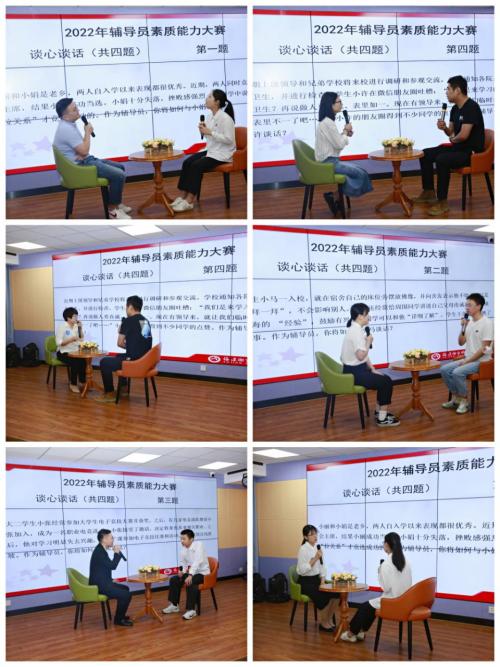 本次決賽參照全省輔導員素質(zhì)能力大賽最新賽制舉行,分為案例研討、談心談話兩個環(huán)節(jié)。