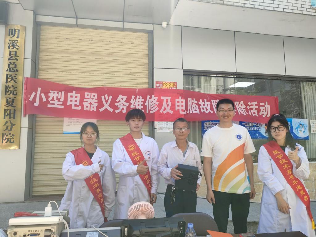 為了能將所學(xué)知識轉(zhuǎn)化為實(shí)踐技能服務(wù)群眾,醫(yī)學(xué)技術(shù)系第二黨支部雙帶頭人黨支部書記、醫(yī)學(xué)技術(shù)系副主任鐘偉雄帶領(lǐng)創(chuàng)新創(chuàng)業(yè)訓(xùn)練營的同學(xué)們加入醫(yī)學(xué)技術(shù)系暑期“三下鄉(xiāng)”紅色筑夢隊(duì),于6月30日赴三明市明溪縣夏陽鄉(xiāng)開展小型電器義務(wù)維修及電腦故障排除社會實(shí)踐活動。醫(yī)學(xué)技術(shù)系黨總支書記柯瓊鶯、黨總支副書記林燕、醫(yī)學(xué)技術(shù)系關(guān)工委委員鄭韻芳、醫(yī)學(xué)技術(shù)系團(tuán)總支書記林詩雨、副書記鄭語琪一同參與志愿服務(wù)。