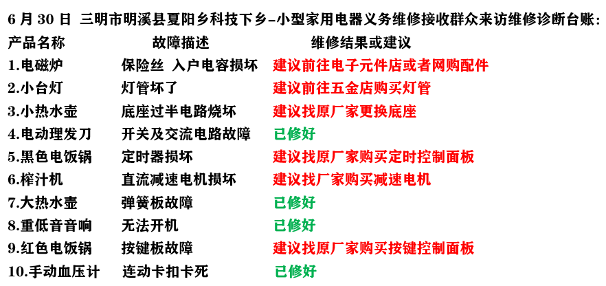 以下是紅色筑夢隊(duì)在本次“三下鄉(xiāng)”義務(wù)家電維修社會實(shí)踐活動中的成果: