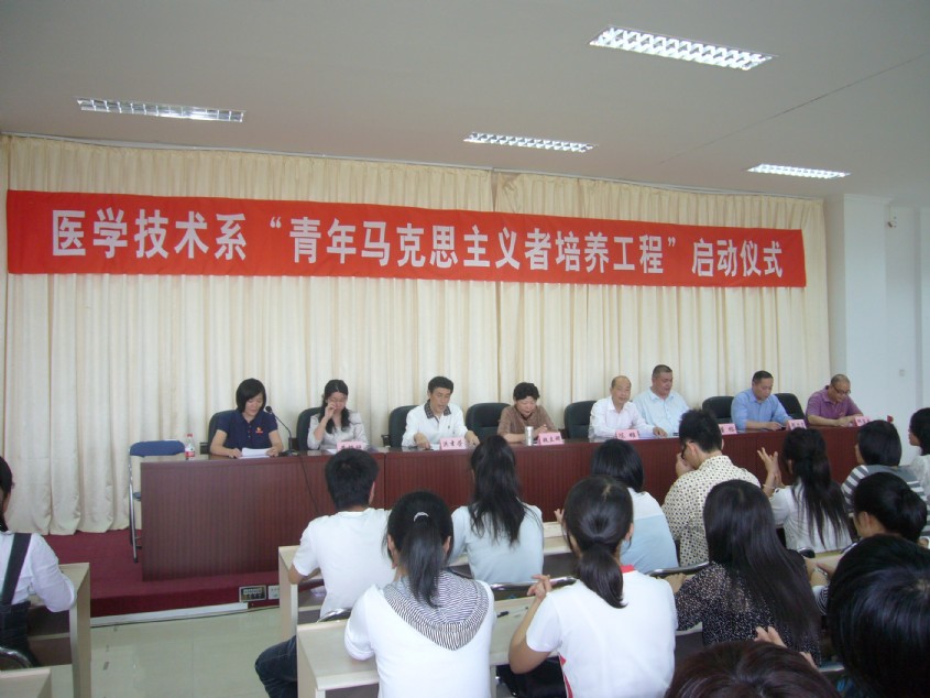 在紀(jì)念五四運(yùn)動(dòng)九十一周年這個(gè)光榮的日子里,醫(yī)學(xué)技術(shù)系在行政樓六樓會(huì)議室隆重舉行“青年馬克思主義者培養(yǎng)工程”(以下簡(jiǎn)稱“青馬工程”)啟動(dòng)儀式。院黨委陳雄副書(shū)記、魏立娜副院長(zhǎng)、黨委工作部董榕部長(zhǎng)、學(xué)工處鄭力宏處長(zhǎng)、黃銘珊副處長(zhǎng)、院團(tuán)委邱滾忠書(shū)記、系黨總支洪聿榮副書(shū)記等領(lǐng)導(dǎo)出席了啟動(dòng)儀式。 “青馬工程”第一期培訓(xùn)班共有學(xué)員50余人。啟動(dòng)儀式由系團(tuán)總支書(shū)記黃小芳主持。